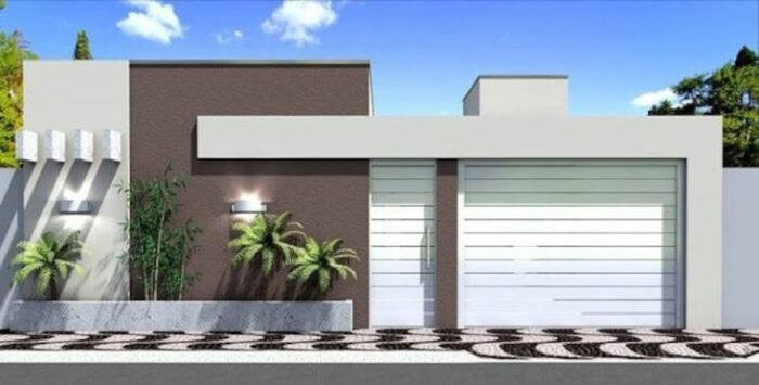 - Escolha cores modernas e neutras para a fachada, como tons de cinza, branco e preto. Você pode adicionar toques de cor com detalhes sutis, como portas de entrada ou plantas.